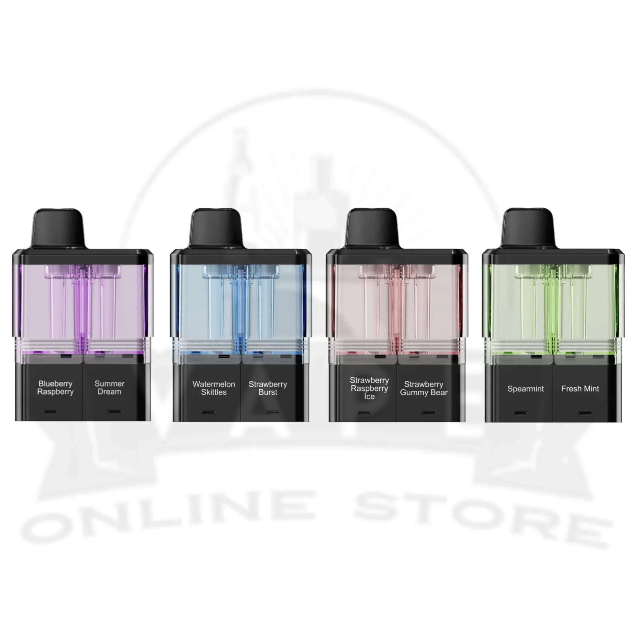 - E-Liquid Capacity: 2 x 2ml pre-filled juice and 2 x Built-In E-Liquid containers