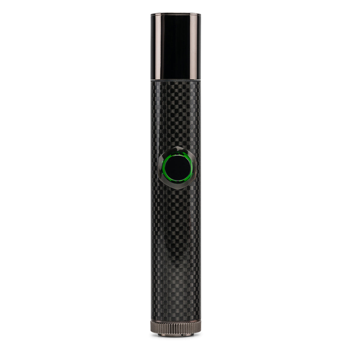 The Slick has a black ceramic heating chamber, replaceable battery, glass stem, and laminated carbon fiber finish that looks good, but can also take a beating.