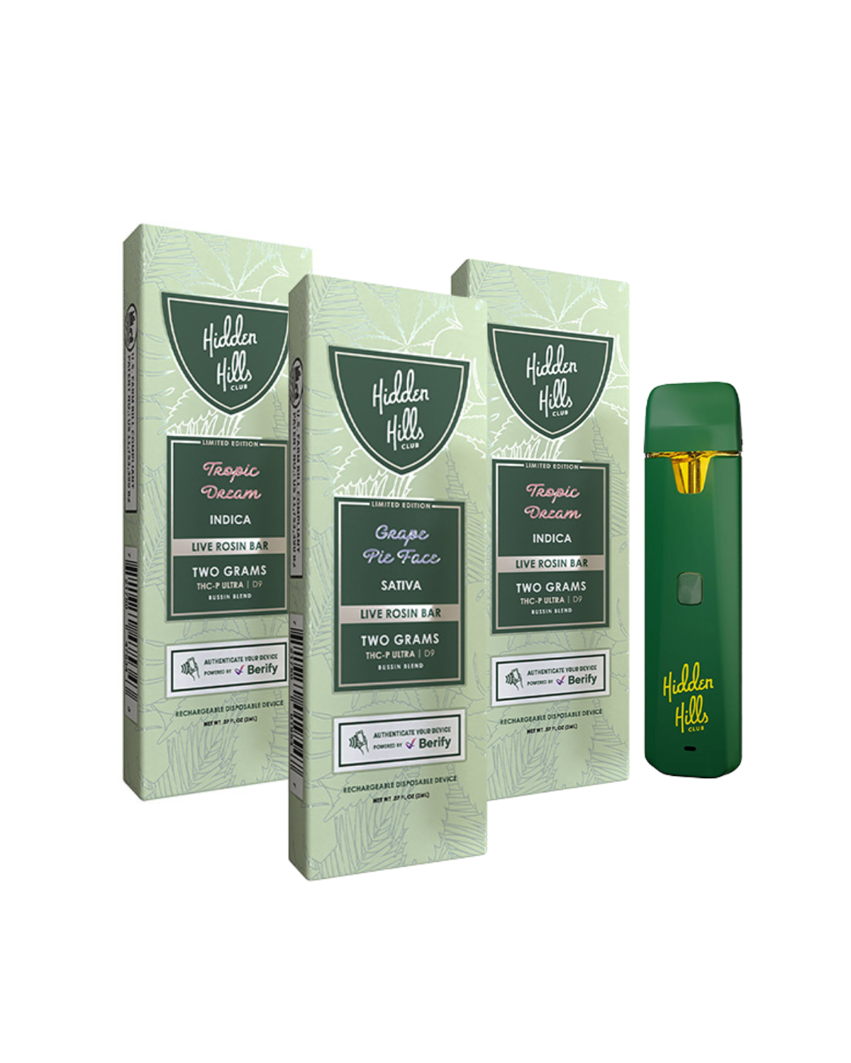 The Hidden Hills Bussin Blend disposables come in 3 different flavor profiles in multiple strains.