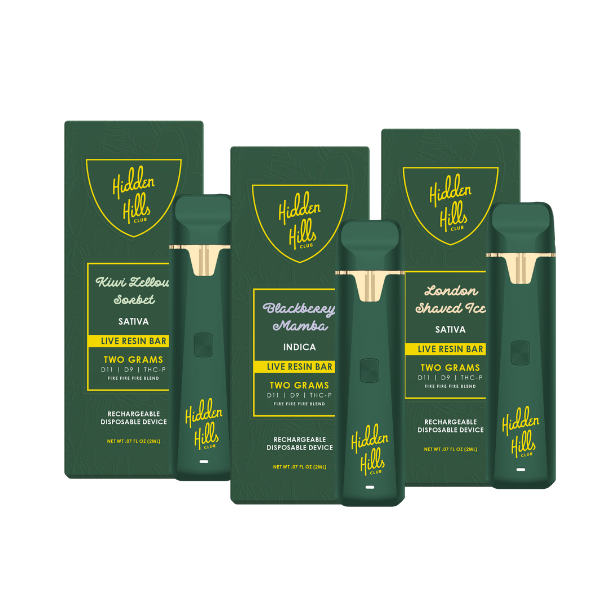 The Hidden Hills 2g live resin disposables come in 6 different flavor profiles in multiple strains.