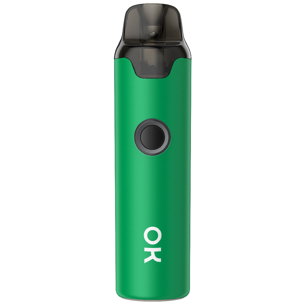 Innokin OKINO C100 pod system kit, features a rechargeable 800mAh battery, direct voltage-based output, and utilizes the RDL OK Coil Series with the 4mL pod. Constructed from lightweight materials, the chassis of the OKINO C100 is portable and strong.