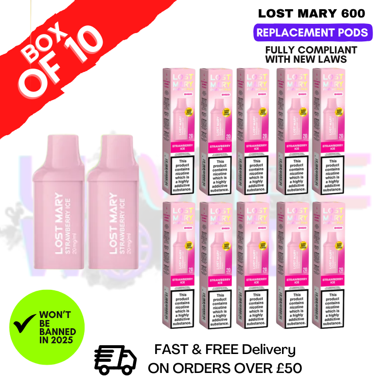 Strawberry ICE Lost Mary 600 Puff Replacement Pods Box Of 10Strawberry ICE Lost Mary 600 Puff Replacement Pods Box Of 10